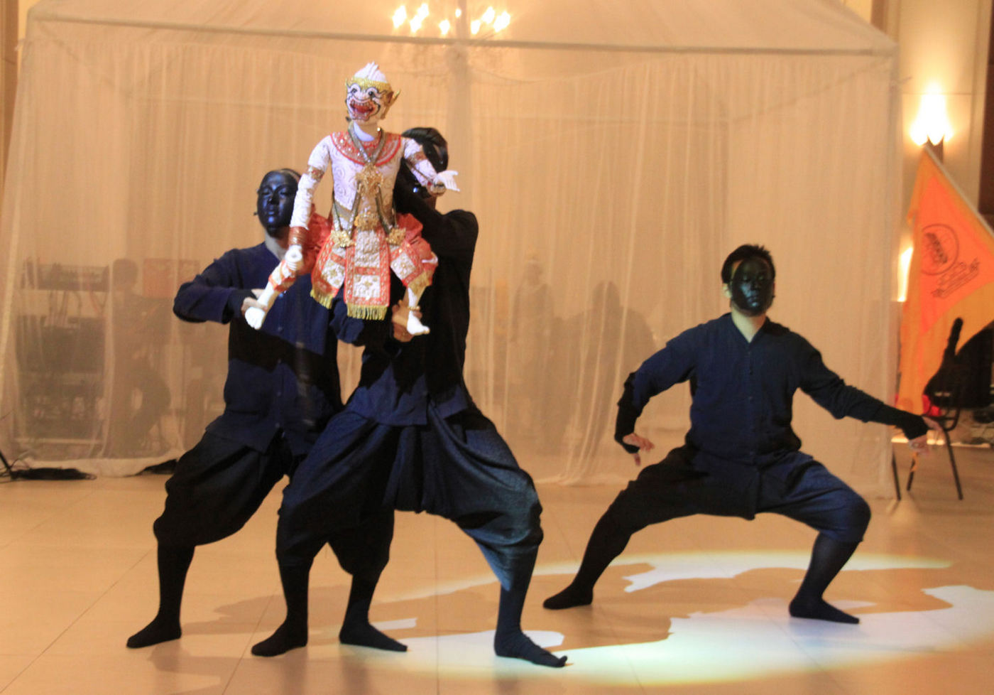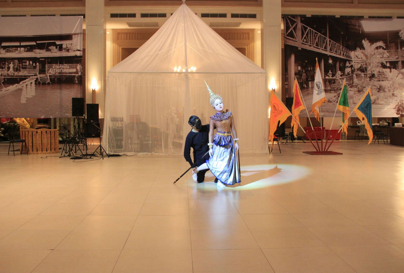 In 2014 waren we andermaal in Bangkok. Naast het jaarlijkse damtoernooi in Jomtien deden we de rondreis door Laos. Wim vindt dit soort damrondreizen vooral aardig, vanwege de dammers. Er zit geen normaal mens tussen. Na afloop van de rondreis verblijf je dan nog drie dagen in Bangkok. De vorig keer zaten we in een hotel aan de rivier. Ditmaal was dat kennelijk lastig en zaten we vlak bij het vliegveld. Dat is een uur rijden van het centrum. Bangkok is qua gebied zo groot als de Randstad, maar dan met tweemaal zoveel inwoners. s' Avonds deden we een rondvaart met optredens. Achtereenvolgens de 'dame', die het optreden verzorgde op de boot. Thaise vrouwen zijn klein van stuk. Dus dit is vermoedelijk een 'ladyboy'. Het is voor ons Nederlanders moeilijk in te schatten. Je ziet ze overal. Ook onder het bedienende personeel in het hotel. Voorts een optreden van marionetten: De apengod en een meisje, dat danst alsof ze een 'pop' is.