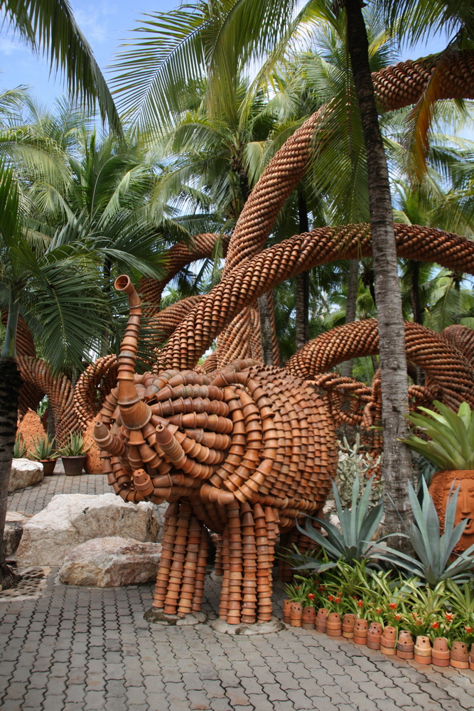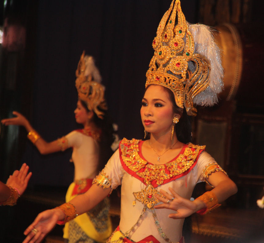 Ter vermaak van de toeristen kom je van alles tegen. Je kunt op tal van plekken rondritten maken op olifanten. Je kunt je laten vereeuwigen met een slurf om de nek. Er worden demonstraties gegeven van Thais boksen. Geen sport voor watjes. De kunst is om elkaar met behulp van het been een rotschop te verkopen. De demonstratie is natuurlijk nep. Maar hij zag er overtuigend uit. Tussen de rondes door worden de vechters overgoten met water. Dan glimmen ze mooi tijdens hun optreden. Ook fraai zijn de demonstraties van de Oosterse dansen. Grote groepen dansers doen formele en minder formele dansen. Soms op de nek van een olifant. Tot mijn verbazing lukte het mij om redelijke foto's te maken op de uiterste zoom van de fotocamera bij matig licht.